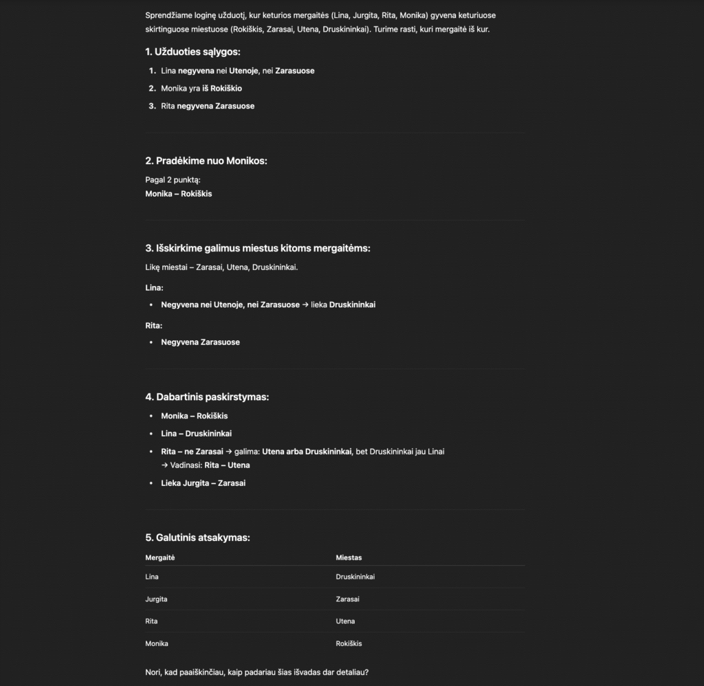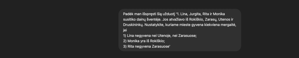 Pateikta standartinė mokyklinė užduotis ChatGPT: